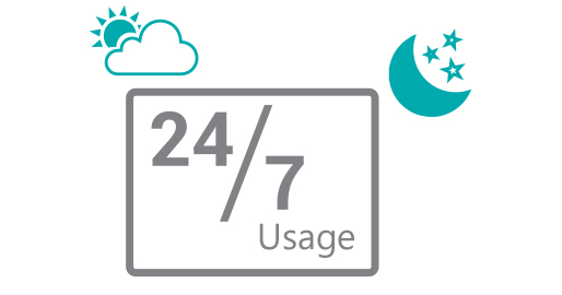 | 24/7 Usage Built with commercial grade panel and components these displays are designed to run 24/7 in constant use; unlike domestic tablets. The panel also has a lifespan of over 50,000 hours of continuous use. They can also be used in landscape or portrait orientation. |