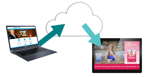 | Update Via The Cloud Updating your screens is extremely simple. Login to www.MySignagePortal.com to upload media, manage playlists, create your own templates and schedule content for whenever you want; giving you complete control over your network. No special software installation or dedicated PC is required, you can update your screens from anywhere in the world with an internet connection. |