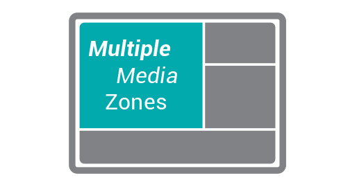 | Create Custom layouts This feature allows you to design your own layout with different media zones for your images, videos, webpages, time, date and also allows you to add a scrolling message or RSS feed. You can even give your layout a corporate “skin” to go around your media zones. |